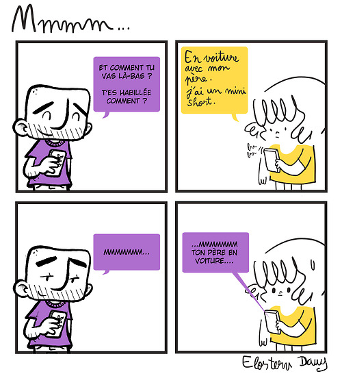 [Davy] Oui, et Elosterv va me remplacer en plus ! C’est à l’école de BD Arc en ciel à Anthony. Je donne des cours sur le strip, la bande dessinée d’humour courte. Je ne voyais qu’Elosterv pour me remplacer car il n’y a que nous qui faisons ça en France. On est les seuls. En tous cas pour les strips qui finissent avec du sexe (rire). Remarque, dans La Petite Mort, il n’y a pas de cul du tout...