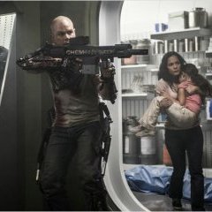 Au sein de notre rédaction, le film a divisé, ce n’est rien de le dire, la faute à un script pas franchement fouillé affichant trop souvent son message avec une grosse paire de bottes flanquées du sigle "rudimentaire". L’organigramme se présente comme ceci : les pauvres en bas sur la Terre et les riches en haut sur la nouvelle Eden "Elysium". La représentation schématique se voit rattachée à un discours sous forme de diatribe sociale minimaliste impliquant l’immigration illégale en toile de fond. Et pourtant, si l’on fait abstraction de ces petites défaillances techniques, la grosse machine de S-F livrée par le réalisateur sud africain n’est jamais en manque d’idées pour assouvir nos désirs de paysages futuristes dévastés et chaotiques (un Los Angeles à deux doigts d’un post apo poussiéreux à la Mad Max) sans oublier ses scènes d’actions fougueuses, investies par une brutalité sans retenue (la prise en chasse du vaisseau de William Fichtner et le dernier acte musclé sur Elysium). Le belliqueux Kruger interprété par Sharlto Copley en impose (même avec des mimiques et un doublage français qui restent assez indigestes), Matt Damon se démène plutôt bien, enfin Jodie Foster imprègne encore une fois la pellicule de toute sa classe. Bref assez d’arguments disposés à vous convaincre de laisser une seconde chance en DVD à cette œuvre certes imparfaite mais recelant de trouvailles graphiques pour le moins intenses.