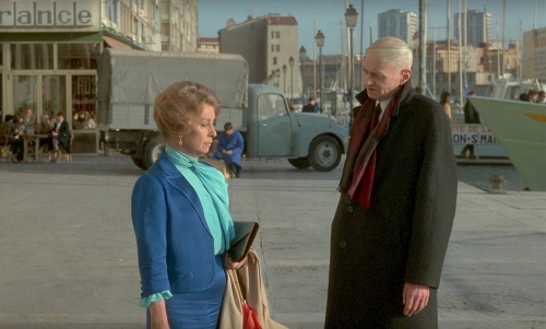 Critique : En haut des marches est né d’un double projet de Paul Vecchiali : raconter la vie de sa mère (décédée peu avant la fin du tournage), et rendre hommage à Danielle Darrieux, son idole, qu’il admirait depuis l’enfance. Ce double rapport affectif est donc le point de départ du film, produit par sa propre société Diagonale Diffusion, avec l’aide de l’Avance sur Recettes. En haut des marches est un beau film, émouvant et complexe, sentimental et cérébral, romanesque et déstructuré. Le récit est balisé en trois niveaux narratifs. Le présent voit le retour de Françoise à Toulon, déambulant dans la ville et rencontrant, au gré de ses déplacements, un ancien collabo esseulé (Michel Delahaye), sa sœur bien-aimée (Hélène Surgère, actrice fétiche du cinéaste), une parente retrouvée (Gisèle Pascal), une ex-domestique dévouée (Sonia Saviange, sœur du cinéate), à moins que cette dernière ne soit une hallucination, tout comme le fantôme de sa mère, spectre fantasmatique. Le passé est évoqué à travers les échanges des personnages et de brefs retours en arrière (l’assassinat de Charles).