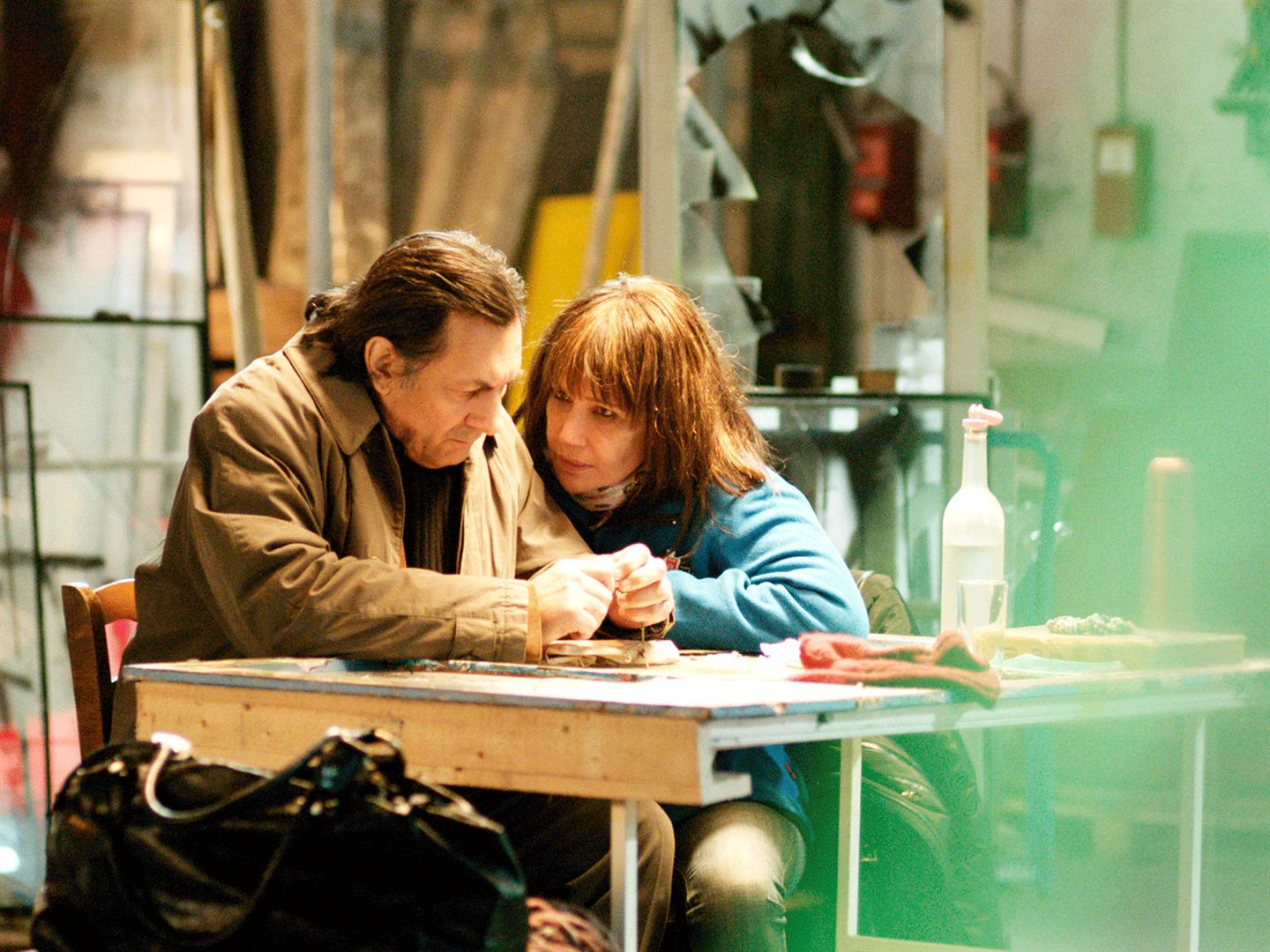 C’est dans l’arrière-boutique d’une miroiterie jonchée de glaces et de miroirs cassés, reflet de ces deux personnes brisées par le destin et le passé que la réalisatrice installe son décor. Le choix du huis-clos emprisonne les personnages dans cet endroit sombre et étroit, décuple les tensions de vie et de mort et les contraint à s’approcher de leurs vérités.