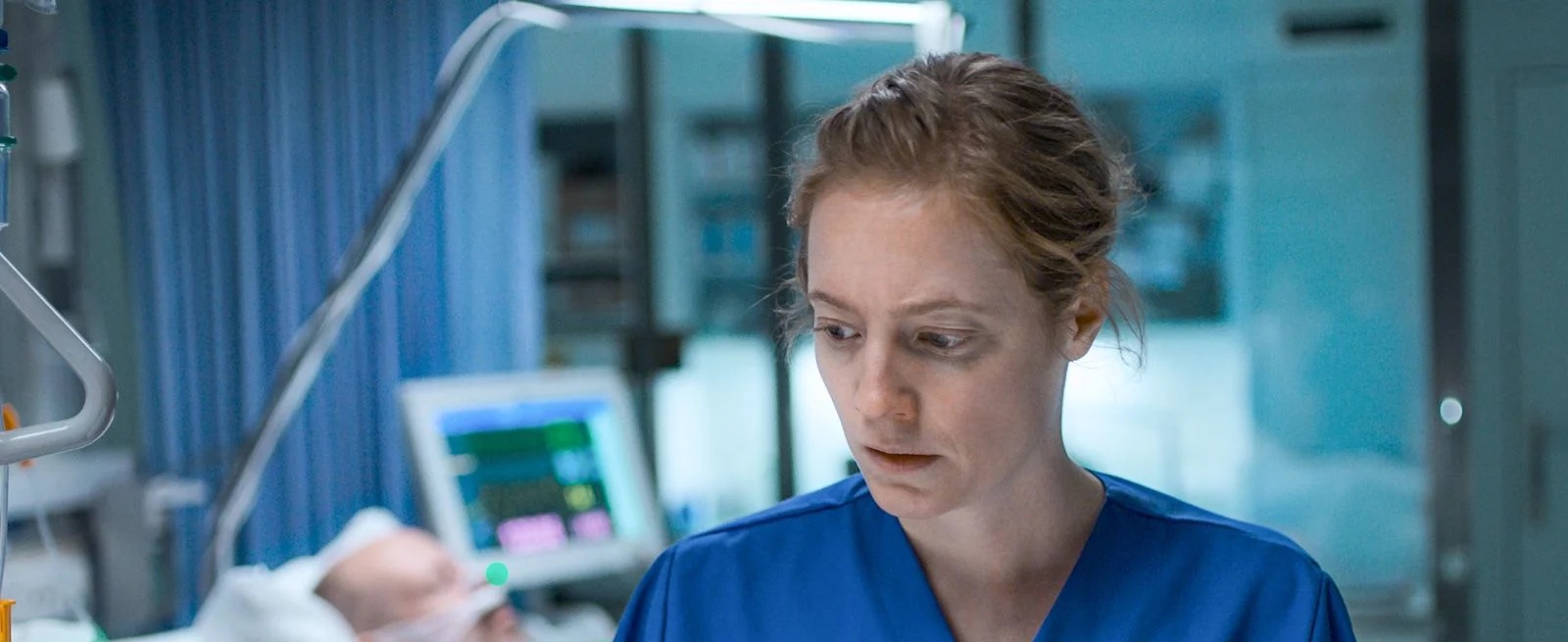 Critique : Il y a des films où le métier d’acteur force à l’admiration. En première ligne est de ceux-là. Leonie Benesch interprète une infirmière dans un service de chirurgie qui se partage avec une collègue et une stagiaire près de vingt-six patients. L’actrice semble avoir exercé toute sa vie ce métier, tant elle est est parfaite dans l’exécution des gestes infirmiers qui rythment la journée d’un soignant. La ténacité, la précision des techniques médicales, la fatigue, l’insatiable investissement dénotent chez elle, un talent pour l’art dramatique rarement vu au cinéma ces dernières années.