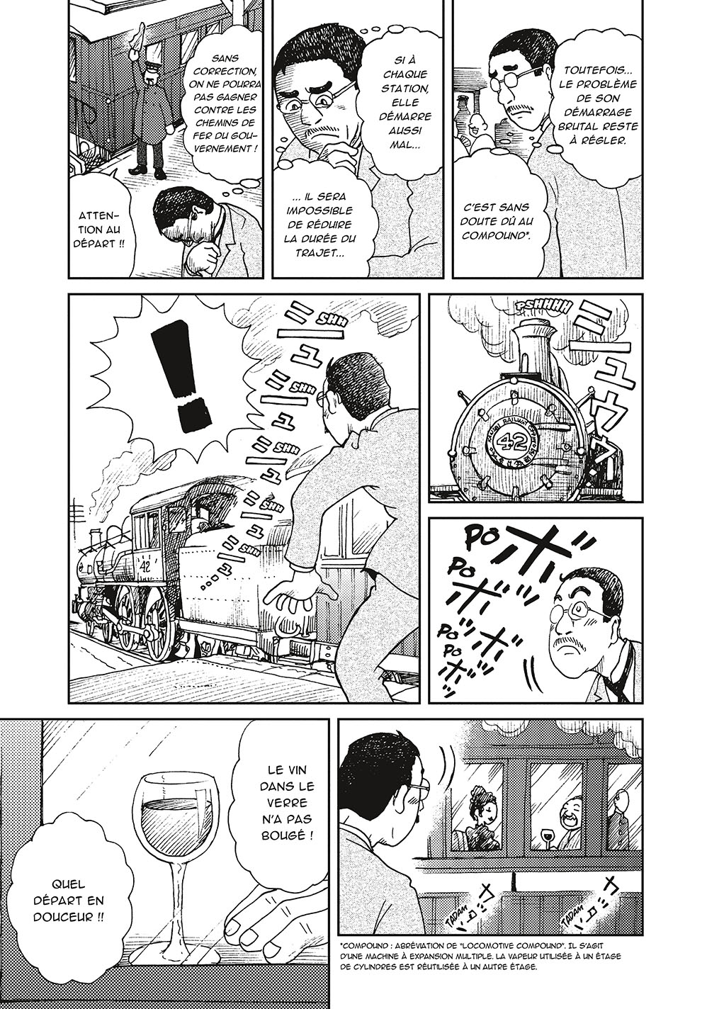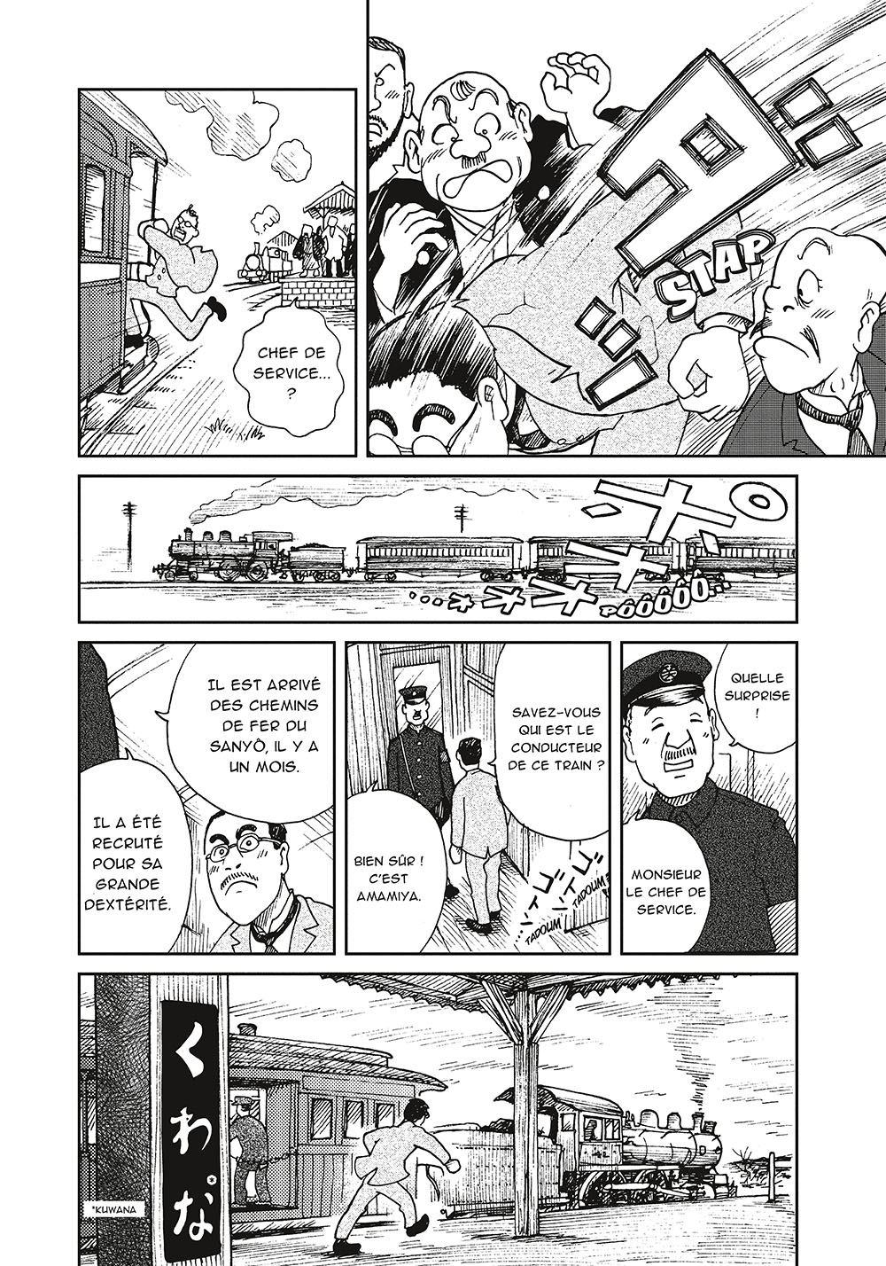 Résumé : Au début du XXe siècle, les chemins de fer japonais sont en pleine expansion. La compagnie du gouvernement et les compagnies privées se livrent une bataille de l’innovation afin de proposer aux usagers les meilleurs trajets. Cette émulation favorise les avancées techniques et commerciales. Ce manga suit la carrière de Yasujiro Shima, un ingénieur qui démarre comme chef de service dans une compagnie privée. Lors de l’une de ses missions, il rencontre, Tetsundo Amamiya, conducteur de locomotive doté de compétences impressionnantes, mais un peu bougre. Tout en apprenant à se connaître et à s’apprécier mutuellement, ils vont ensemble œuvrer aux progrès ferroviaires de leur pays.