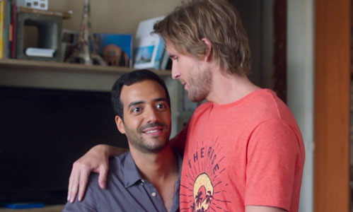 Cette onde de choc sociétale, dont l’opposition a permis une libération de la parole homophobe en France et l’a permis visible dans les comédies françaises les plus puériles (Les Nouvelles Aventures d’Aladin en était jusque là la plus marquée), n’avait cependant pas encore été traitée frontalement au cinéma. Pour ce faire, Boudali s’imagine en immigré marocain sans papier contraint, pour obtenir la nationalité française, de demander en mariage blanc son ami, un chômeur, forcément fainéant. Le seul pitch laisse déjà filtrer les caricatures dont se délecte l’extrême droite dans ses discours populistes. Peut-on au moins accorder à Boudali la caution « autodérision » dans la représentation archaïque de la communauté marocaine dont il est lui-même issu ? Celle-ci a surtout de gênante, plus qu’un racisme sous-jacent, le sexisme avec laquelle apparaît la figure de la mère, mais aussi l’homophobie du père qui semble permettre de justifier celle du fils.