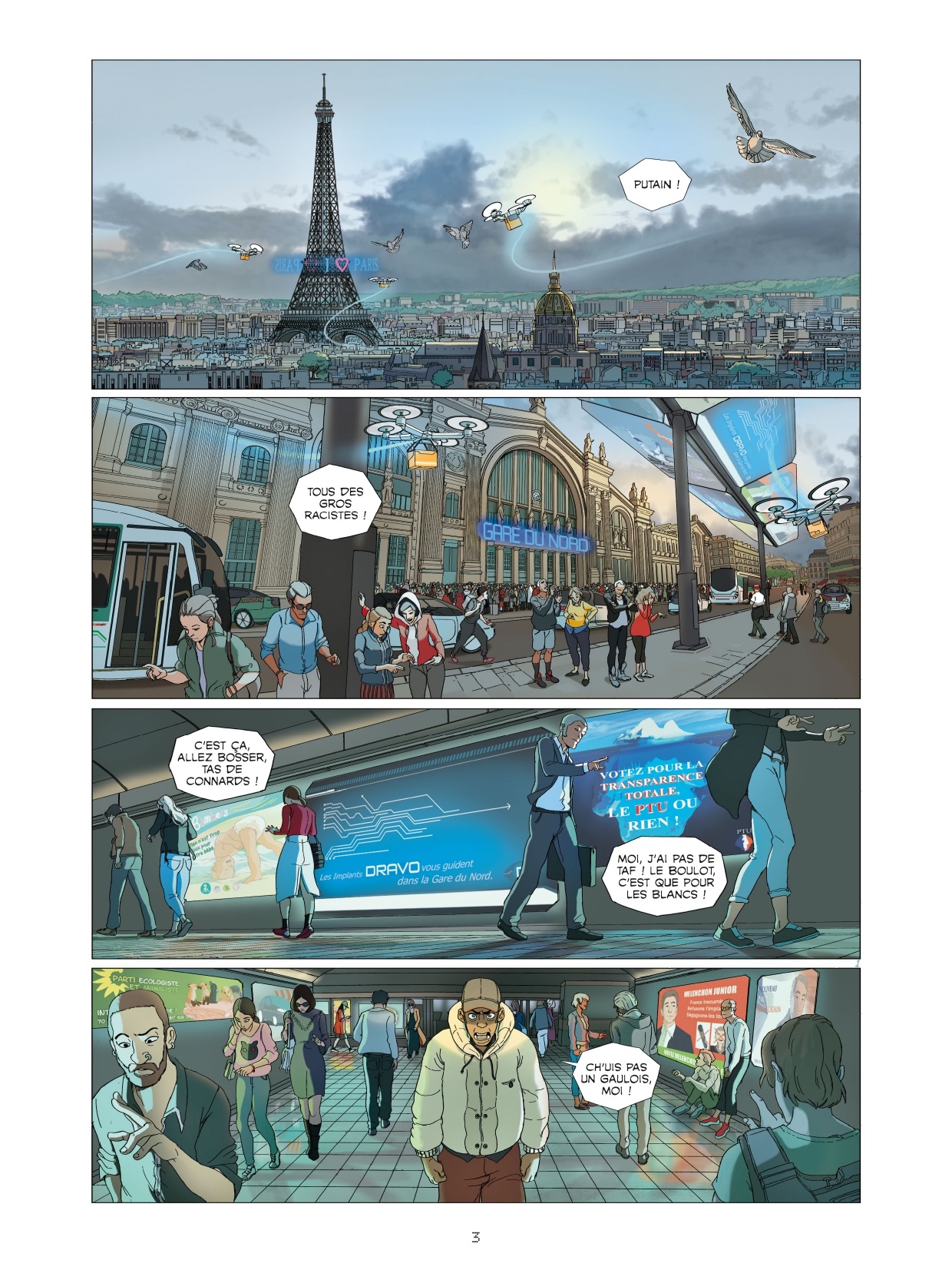 Le dessin de Jenolab - dont c’est le premier album - est riche, mais peut-être un peu trop lisse. En liant intimement destins individuel et collectif, la fin semble avoir une portée moins générale, mais ce parti pris narratif permet de resserrer la fiction, tout en livrant une ultime idée / réflexion qui chemine dans la tête du lecteur, une fois l’album refermé.