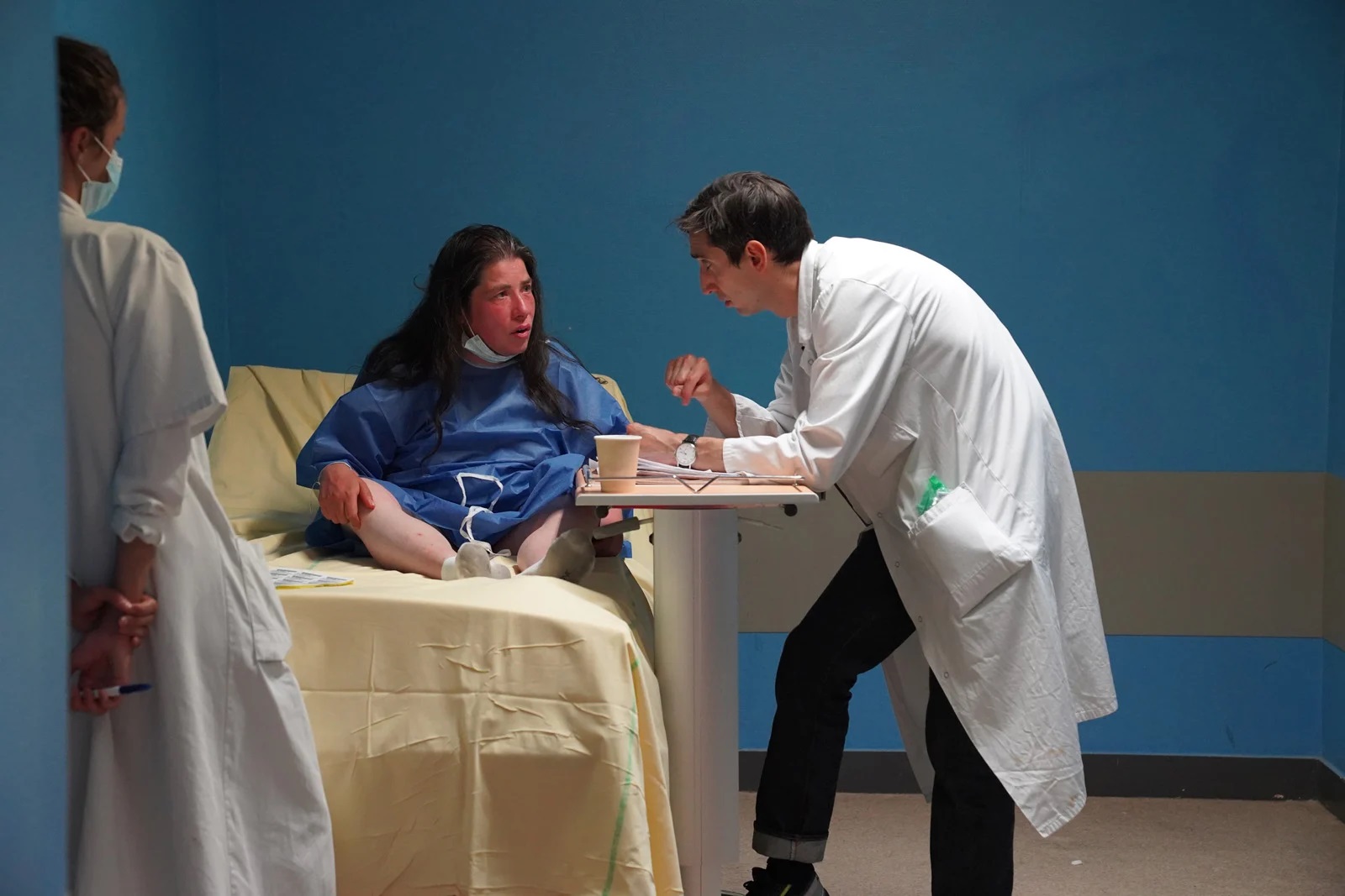 Nicolas Peduzzi réinvente la couleur et la langage du documentaire. L’imprécision et la confusion des styles concourent à récréer un univers qui n’est plus tout à fait réel. À la limite, l’enjeu n’est pas de dire le monde tel qu’il est. Le dessein du réalisateur est de révéler un monde qui se joue au-delà des apparences. Ce médecin qui court d’un étage à l’autre n’est plus tout à fait un scientifique drapé dans ses apprentissages médicaux, mais un homme anxieux, instable presque, qui s’égare dans le regard de ses patients pour ne pas céder à sa propre folie. On ne sait rien de cet homme en dehors de sa vie à l’hôpital : s’il est marié, a des enfants, pratique le ramadan ; on ne sait rien d’autre que sa gestualité hyperbolique et ses paroles moins soignantes que pétries d’une humanité infinie.