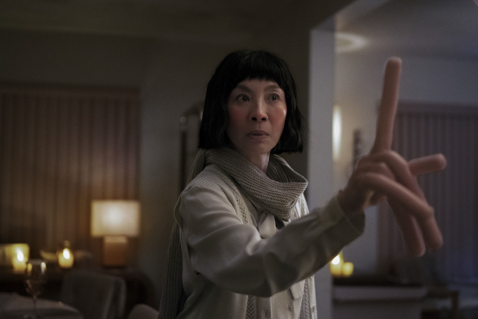 Critique : C’est une famille américaine, d’origine chinoise, qui arrive au bout du bout : un contrôle fiscal, un divorce imminent, une fille dont la mère rejette l’homosexualité, et un grand-père en perte d’autonomie. Il faut donc faire appel au surnaturel pour que la mère, Evelyn Wang, ne pète pas un plomb. Et c’est exactement ce qui survient soudain, en plein rendez-vous avec le service des impôts, quand son mari, transformé en un homme dynamique et agile, l’entraîne dans des mondes parallèles qu’il faut sauver du chaos. Écrit comme cela, on peut craindre le pire. Car il y a dans ce Everything Everywhere All at Once un zeste composite de tout ce qui fait le succès du cinéma américain : du fantastique, de l’action, de l’humour, du kung-fu, le tout dans un genre pas très éloigné des super-héros.