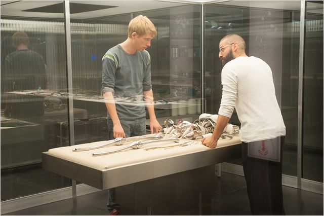 Ex Machina se structure en grande partie sur des questions d’éthique autour du développement de ces nouvelles intelligences artificielles robotiques toujours plus proches de l’être humain. Afin de servir son propos, Garland fait interagir sous nos yeux un triangle de protagonistes d’une troublante et parfaite ambiguïté. Oscar Isaac incarne Nathan, un nabab égocentrique qui s’impose comme une sorte d’alliage entre Pygmalion, Barbe Bleue et Mark Zuckerberg. Retranché dans un havre de paix loin de la civilisation, il fait appel à Caleb (Domhnall Gleeson), un jeune programmateur employé dans sa société informatique. Ce dernier aura pour mission de déterminer si la conscience de la dernière création de Nathan, un androïde féminin du nom d’Ava (la douce Alicia Vikander), équivaut à celle d’un être humain.