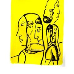 jaunes et ensoleillées, et vous terminerez la visite au premier étage où sont accrochés des dessins de très grand format, à l’ encre de Chine, représentations d’une humanité inquiète.
