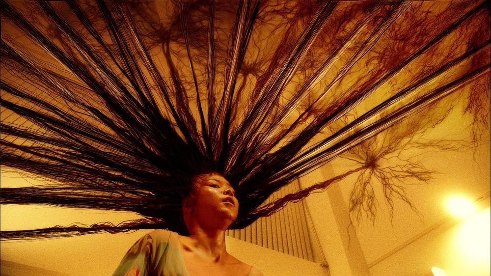 vraiment terrifiant. Stimulé par d’étonnantes trouvailles visuelles à l’instar de l’utilisation faite de cheveux qui se libèrent des orifices de leurs victimes ou de toute cette masse capillaire envahissant l’espace de pièces entières, Exte ne réussit pourtant pas à assurer un développement très convaincant de ses personnages et s’égare lorsqu’il entreprend de traiter frontalement, mais hélas sans réelle conviction, de maltraitance sur enfant. Bien que quelques délires graphiques notables dans les scènes d’horreur soient au rendez-vous (on passera sur le rendu inégal de certains effets spéciaux numériques), l’ensemble progresse sous un angle trop bancal où le côté dramatique de l’histoire ne trouve jamais l’équilibrage nécessaire avec la touche d’excentricité amenée par Sono Sion. Rires forcés et cheveux qui ne se dressent que trop timidement sur le haut du crâne, c’est sûr qu’on attendait mieux de la part du cinéaste dans un tel registre.