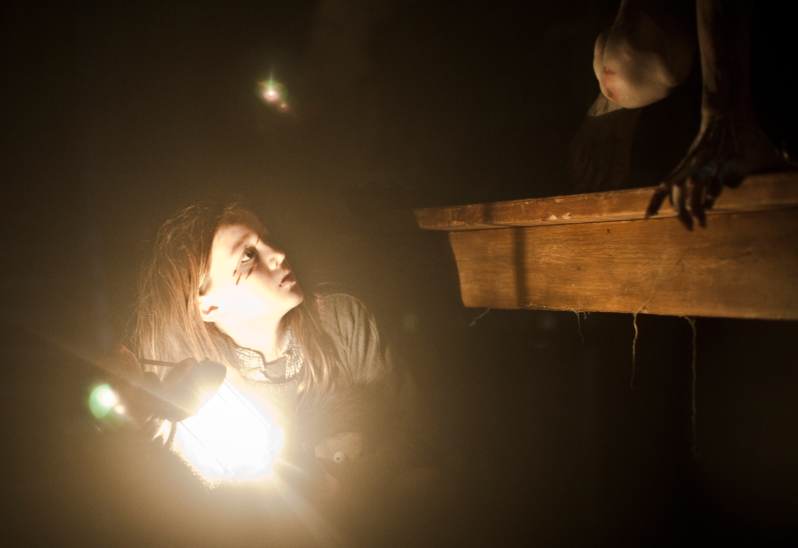 En fait, le principal motif de satisfaction tient au jeu des acteurs. Matthew Fox (la série Lost) et Jeffrey Donovan (la série Fargo) rentrent parfaitement dans la peau de leurs personnages. Quant à la jeune Quinn McColgan, elle apporte une fraîcheur et une sensibilité bienvenues. Ce sont bien les acteurs qui participent à l’ambiance du film et à la (petite) tension qui s’opère progressivement. Il va sans dire que l’on s’attend forcément, à un moment ou à un autre, à l’attaque d’infectés. Les monstres sont plutôt réussis au niveau de leur design, rappelant étrangement les crawlers de The descent (2005). Ils sont d’ailleurs eux aussi aveugles !