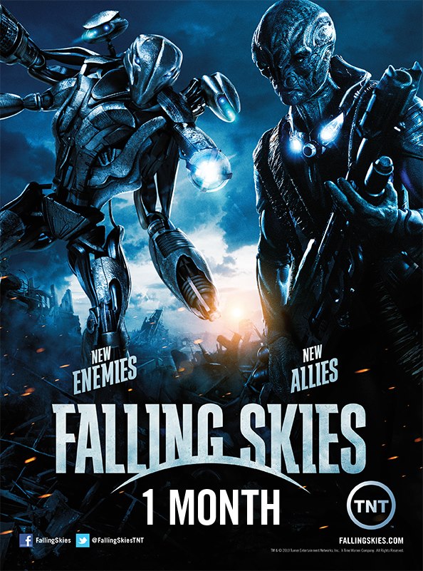 La troisième saison de la série télévisée américaine de science-fiction Falling Skies produite par Steven Spielberg via les studios Dreamworks Televisions a été diffusée entre le 9 juin et le 4 août 2013 sur la chaîne TNT. A huit mois de la reprise de la saison 4, voilà que débarque déjà un trailer de deux minutes qui compile des extraits explosifs de la lutte pour la défense de la terre contre la menace extraterrestre. Noah Wyle et sa bande ne baissent pas les armes mais il faudra patienter jusqu’en juin 2014 pour les retrouver au cœur de l’action. A noter que les 10 épisodes de la saison 3 viennent d’être diffusés en France sur Orange Cinémax entre le 10 septembre et le 8 octobre 2013.
