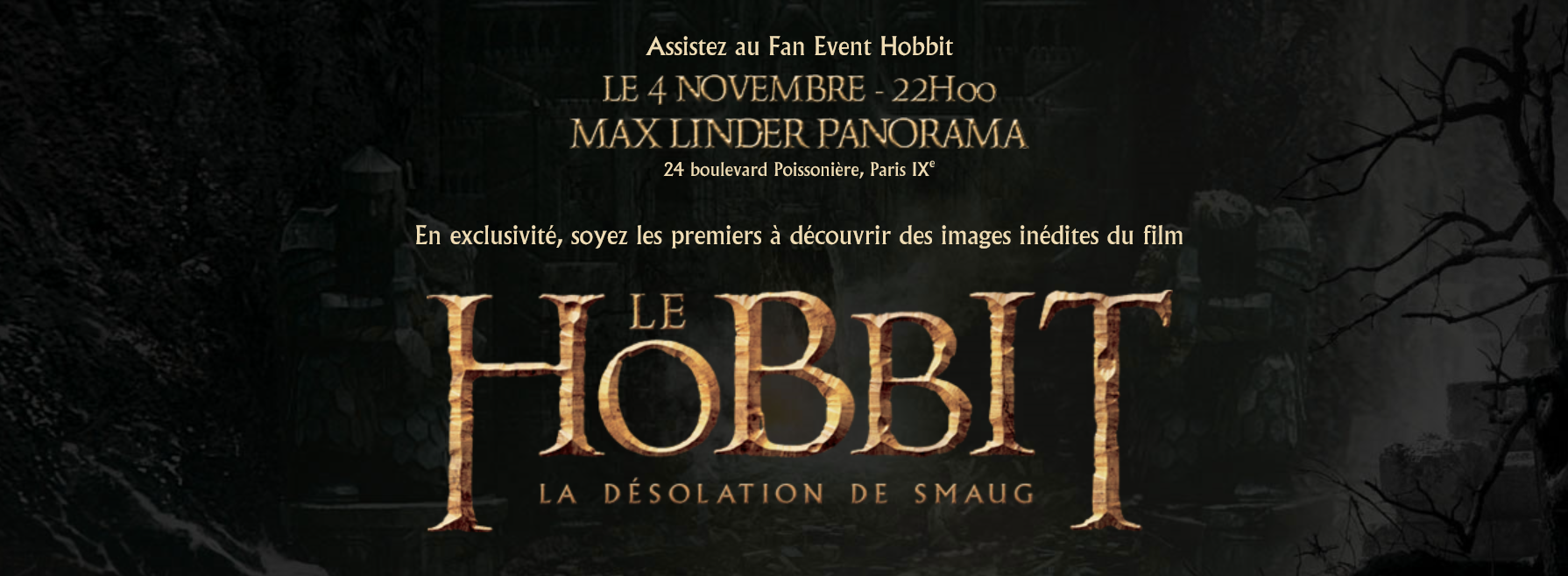 De bonnes nouvelles nous parviennent de la Terre du Milieu ! Lundi 4 novembre a 22 heures, un grand événement en l’honneur des fans du cinéaste néo-zélandais et de Tolkien se tiendra dans quatre salles de cinéma à travers le monde. Toutes reliées par satellite, elles diffuseront les premières images du Hobbit : la désolation de Smaug et permettront aux spectateurs de poser leurs questions en direct au réalisateur et aux comédiens. En ce qui concerne la France, le rendez-vous est donné au Max Linder à Paris.