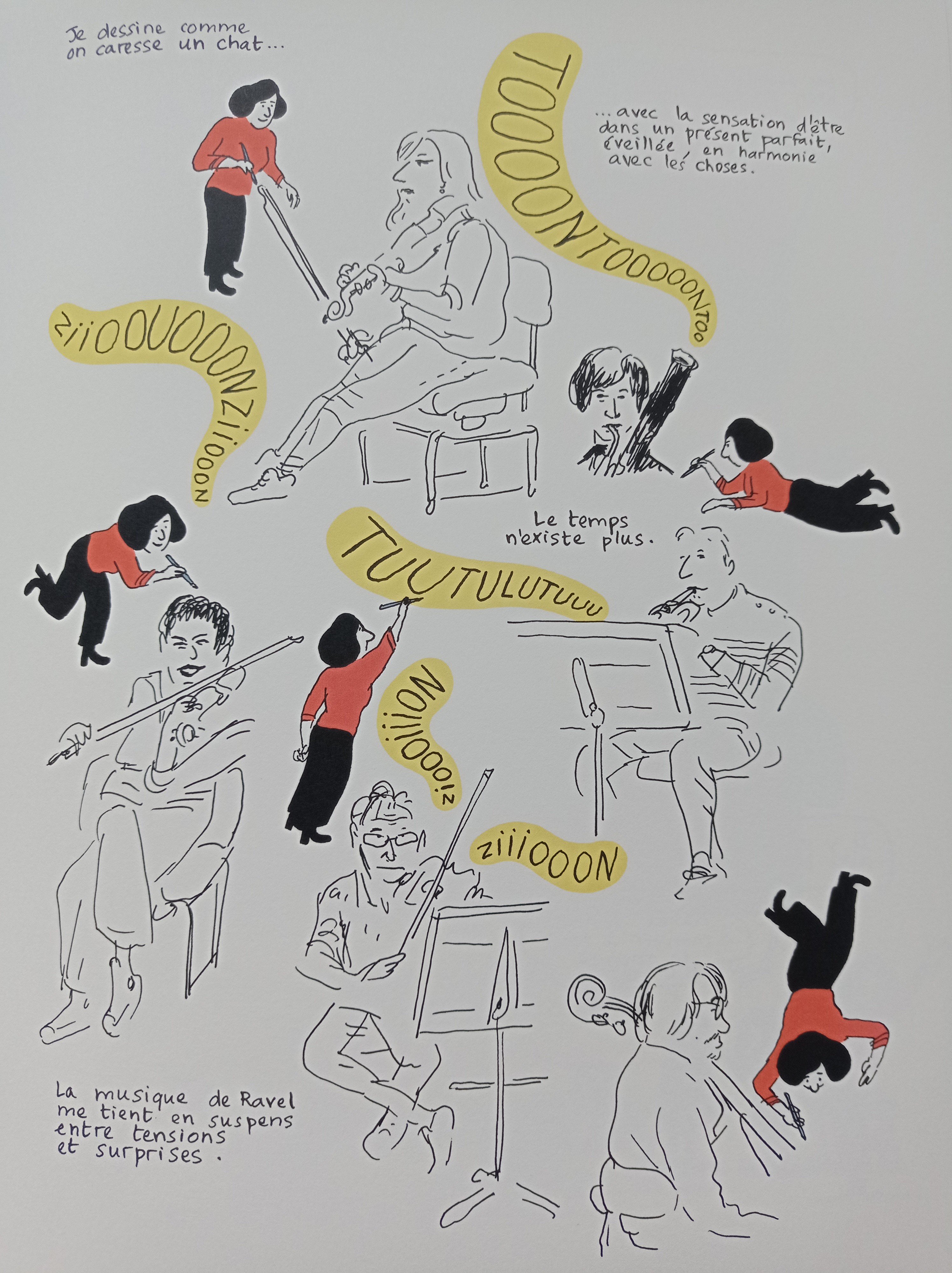 Résumé : Quand elle était plus jeune, Dorothée de Monfreid aimait écouter {L’enfant et les sortilèges}. Devenue une autrice de bande dessinée expérimentée, elle a envie de travailler sur cette œuvre musicale née de l’imagination et la malice de deux artistes du début du XXe siècle : Colette et Ravel. Peu de temps après s’être lancée dans son nouveau projet créatif, elle apprend que cette pièce est jouée à l’Opéra Garnier. Bien évidemment, elle s’empresse d’acheter une place pour la représentation qui doit avoir lieu quelques mois plus tard. En partageant son idée avec son éditeur, qui n’est autre que Mathieu Sapin, elle obtient l’opportunité de réaliser une bande dessinée de reportage sur les répétitions de cette œuvre. Elle découvre ainsi avec émerveillement les coulisses l’Opéra Bastille, où s’élaborent les premiers préparatifs, ainsi que celles de l’Opéra Garnier, où se tiennent les ultimes répétitions avant la représentation.