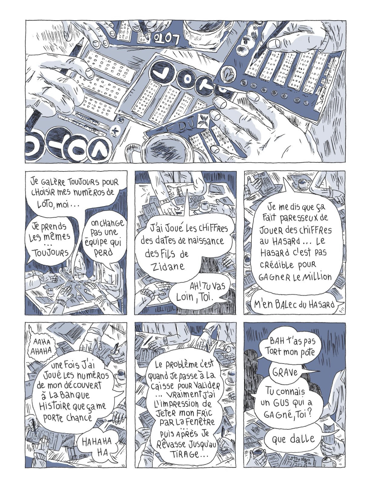Avec ses histoires courtes courant sur une poignée de pages, Faut faire le million est un magnifique condensé de l’art de Gilles Rochier. Ce dernier propose des instantanés vifs, saisissants et profonds, saynètes qui se font fréquemment écho et permettent au lecteur d’éprouver la vie de banlieusard. Il en ressort un humanisme d’autant plus intense qu’il ne se met pas en avant et ne se revendique pas comme tel.