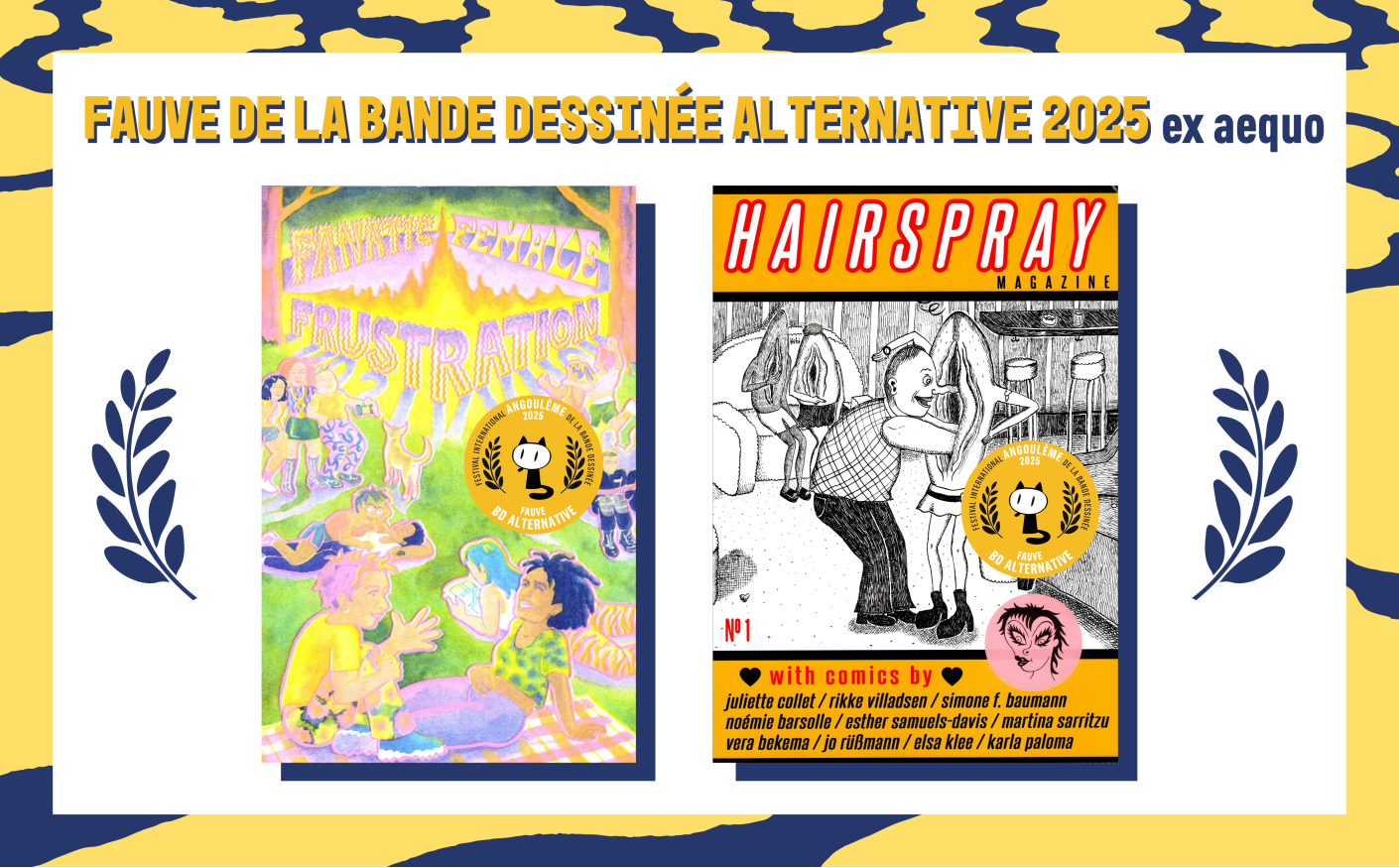 Enfin, le Prix de la bande dessinée alternative, qui récompense un fanzine, couronne deux créations : Hairspray Magazine, porté par un collectif berlinois, et Fanatic Female Frustration, recueil réalisé par des autrices dont le numéro rend hommage à Aline Kominsky-Crumb récemment disparue.