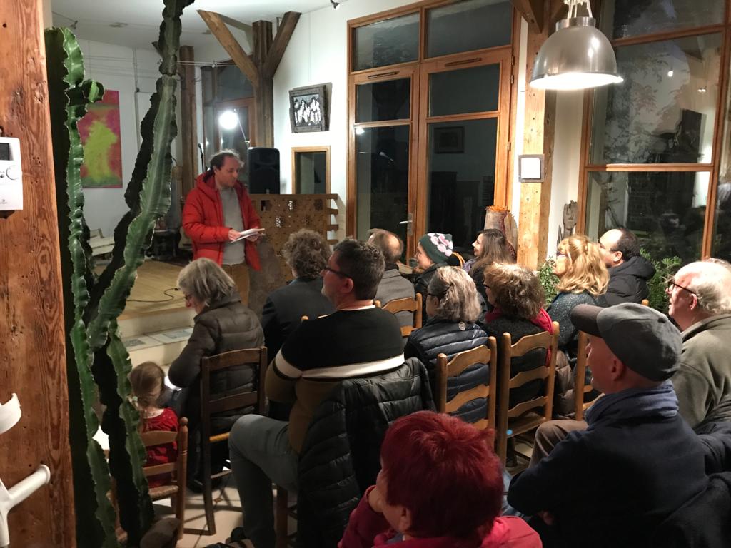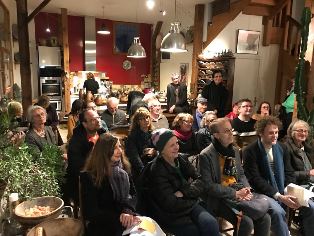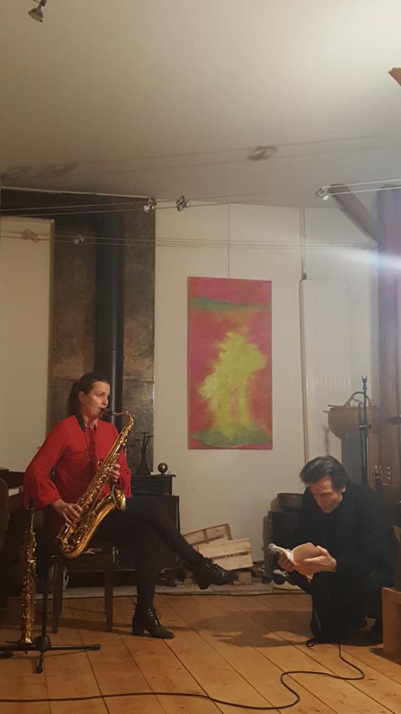 La journée de samedi s’est clôturée dans un magnifique lieu privé rue du Ratrait, l’atelier de l’artiste Bertrand Bellon, et la magie a opéré sans failles entre la lecture du poème collectif "de promenade", élaboré l’après-midi par les participants au fil des rues, la lecture du poète kurde Seyhmus Dagtekin accompagné de la saxophoniste Hélène Arntzen et enfin le spectacle théâtral d’après Baudelaire, mis en scène par Patrick Verschueren (récitant) et Karinn Helbert (récitante et pianiste).