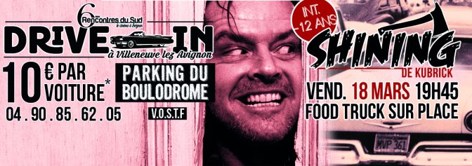 Enfin, à noter que le festival propose aussi une expérience originale tout droit sortie de l’Amérique des années 50 : Un ciné Drive-in avec la projection de Shining de Stanley Kubrick, de quoi frissonner d’angoisse, mais au chaud dans sa voiture, en mangeant éventuellement un hot-dog et si possible en bonne compagnie.