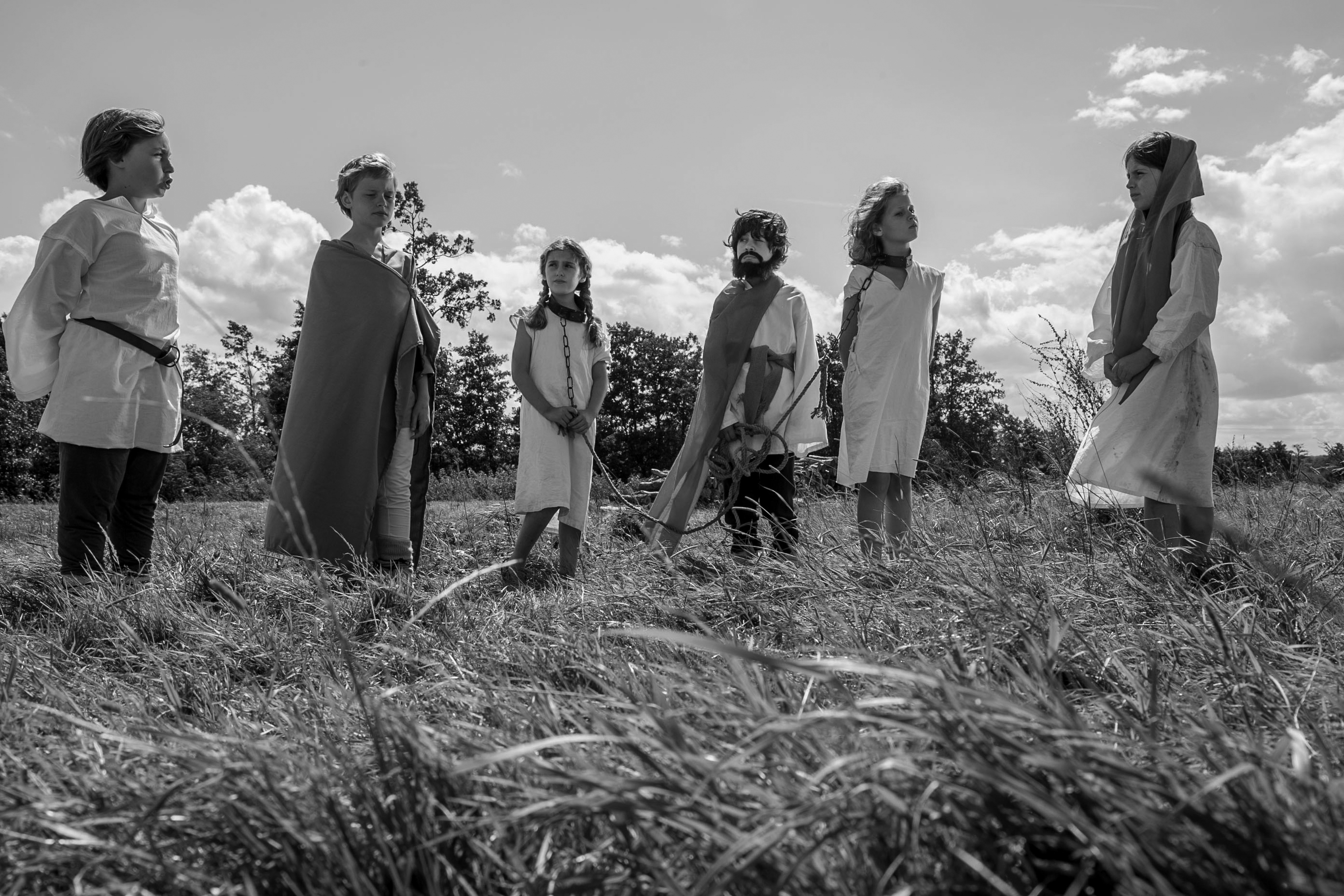 L’argument : Bercés par le récit d’un vieil homme érudit, des filles et des garçons d’aujourd’hui se retrouvent immergés dans le Moyen Âge, dans la peau du Christ, de Jeanne d’Arc ou d’amants courtois. L’heure est à la libération des femmes. C’est la lecture inédite que Hubert Viel fait de cette époque, ici recréée dans un superbe noir et blanc. Tourné avec des enfants, Les Filles au Moyen-Age est un conte loufoque et touché par la grâce, comme un Monty Python qui aurait la foi.