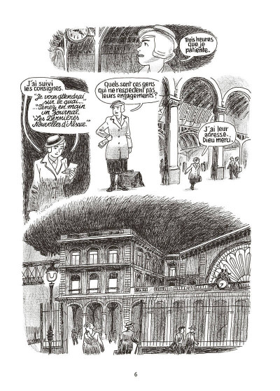 Amateurs de grands frissons, fictionnels ou historiques, passez votre chemin. Finnele, cette chronique BD qui vient du blog du même nom, a fait de son cœur d’ouvrage l’authenticité, l’humilité et le quotidien. Ces trois attributs vont de pair avec le personnage, surnommée Finnele mais qui rêve qu’on l’appelle vraiment Joséphine, en flânant devant les vitrines des Galeries Lafayette ou en croisant les gens de la haute société bien mis. Jusqu’à ses trente ans, elle travaille, est indépendante, s’améliore, survit à la tuberculose et surtout la dépression qui l’agite, veut choisir sa vie, et à cette époque, c’est déjà une sacrée aventure. Cette expérience évoquée, il faut aussi souligner l’atmosphère, ces années 1930 et surtout 40 où la montée du fascisme, les erreurs de certains, les arrangements des autres, que ce soit un ami membre des chemises noires, un curé qui arrive à ne pas faire baptiser la rue de l’église du nom du Führer, des riches exilés en Suisse, les petites histoires sont comme toujours nombreuses dans la grande, mais comme son personnage, l’œuvre ne juge jamais, ne tolère rien, se contentant de montrer.