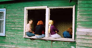 Les russes, installés après la guerre et plus que jamais isolés de la mère patrie depuis la chute de l’URSS, désertent lentement ce territoire où l’Histoire semble s’être arrêtée et où l’avenir n’offre aucune perspective. L’hymne national de la Sainte Russie résonne lors d’une dérisoire cérémonie de rentrée scolaire au milieu d’une assemblée dont on ne sait si elle est recueillie ou perplexe. Les adultes n’occupent à vrai dire qu’une place très marginale dans ce film. Ceux qui apparaissent à l’écran sont pour la plupart des alcooliques en état de totale déréliction.