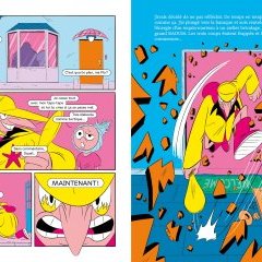 Critique : Situé à mi-chemin entre la bande dessinée et l’album jeunesse, Florimonde et l’affaire Coquillette s’empare des codes du polar – le récit introspectif à la première personne, l’inspectrice en imperméable (qui devient un ciré ici !) dure à cuire qui a roulé sa bosse... – pour construire un récit pour la jeunesse intelligent, dans un univers marin. Les personnages ont en effet l’apparence de crustacés, avec un maire en forme de calamar ou des fans dotés d’une tête de moule. Le design amusant des personnages et le graphisme coloré, avec des couleurs vives où dominent des teintes orangées fluorescentes, donnent à l’album son aspect décalé et attrayant, qui saura d’autant plus séduire le jeune public que la narration tient son lecteur en haleine jusqu’à la dernière page. À l’image du dessin riche en détails du talentueux Simon Bournel-Bosson, la fabrication de l’album proposé par l’Agrume s’avère également particulièrement soignée. Un bel objet à mettre entre les mains du jeune public : il n’est jamais trop tôt pour donner aux enfants le goût du polar (ou tout du moins, à partir de 7 ans, âge minimum conseillé pour la lecture de cet album) !
