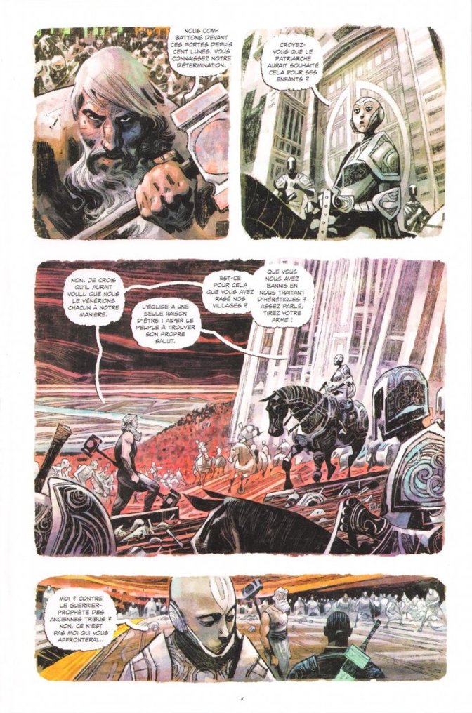 Résumé : La religion en vigueur dans le royaume des Cinq Rivières veut qu’un être issu d’un autre, appelé le Patriarche, a créé les cinq rivières qui alimentent le monde. Chaque cours d’eau a une fonction : l’un permet d’oublier ses souvenir, un autre sert à y plonger ses adversaires… Dans ce royaume, c’est l’Église, et son bras armée de l’Inquisition, qui règne en maître en imposant sa doctrine rigide. Mais un jour, la chamane Noa décide de renverser le cours des choses : victime d’une injustice, elle propose au plus grand guerrier du royaume, le terrible Ruza le Crasseux, le plus grand défi dont il puisse rêver : trouver et assassiner le Patriarche, figure divine de leur monde. La quête dans laquelle les deux personnages se lancent remet en cause les fondements de leur croyance.