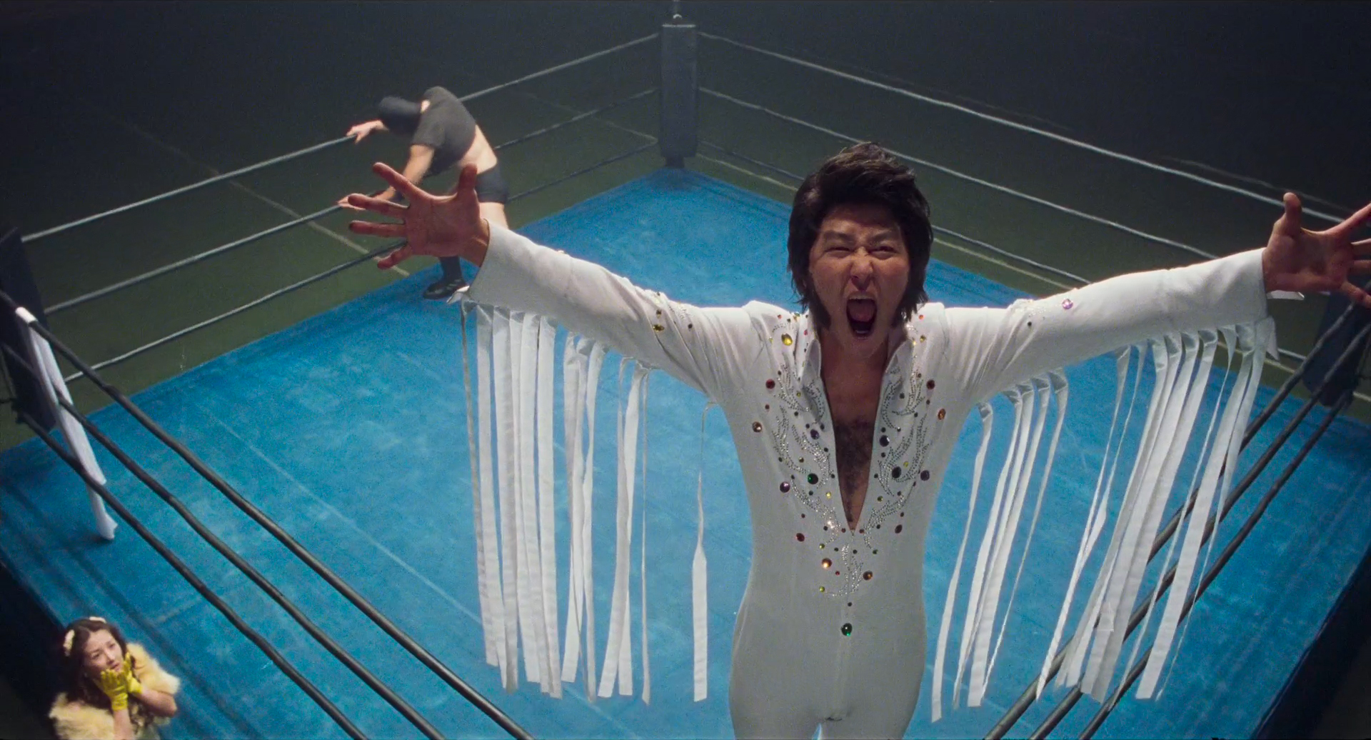 Jouant sur l’humour et les situations absurdes, n’hésitant pas à emprunter au cartoon, Kim Jee-woon s’amuse des mésaventures cocasses de son personnage principal, qui tournent en dérision chacun des motifs sur lesquels se jouera le drame de The Wrestler (2008) de Darren Aronofsky : alors qu’il vient de blesser un collègue en confondant une fourchette factice avec celle de son repas, notre grand dadais se rêve ainsi, au détour d’une séquence fantasmatique, en lutteur invicible, grimé en Elvis Presley...