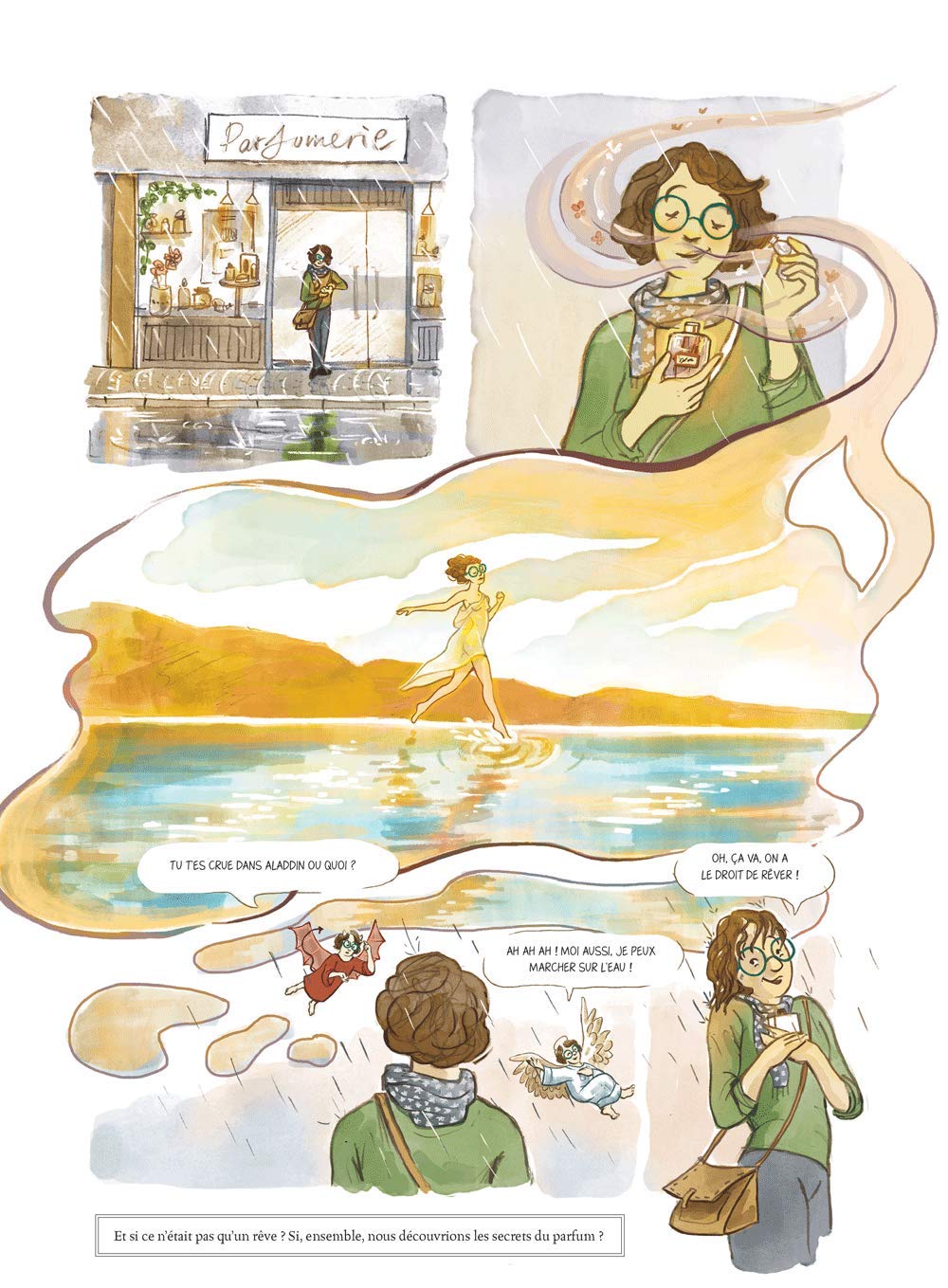L’ouvrage se veut probablement léger comme un parfum mais l’ambiance est un peu plombée par les petites vignettes en off de l’autrice qui ne sont pas forcément drôles et bienvenues. Cette BD se veut vulgarisatrice certes mais survole un peu trop rapidement le sujet.