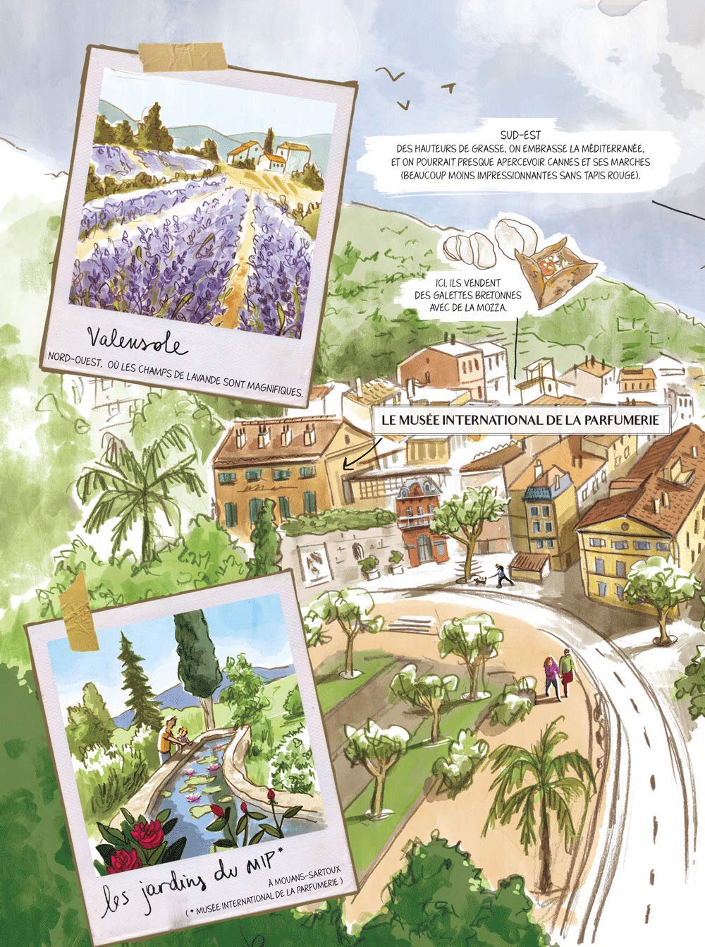 La bande dessinée de Élisa Gandolfo et Élodie Font aborde différents métiers ainsi que tous les aspects et environnements de ce milieu : l’agriculture, les techniques de captation des odeurs, les parties juridiques, commerciales, financières, sociologiques, historiques… et humaines.