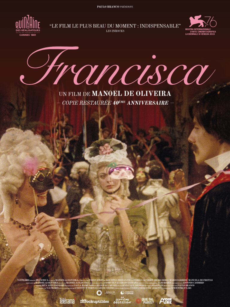 À l’instar d’un Peter Greenaway, Manoel de Oliveira est de ces cinéastes dont les influences sont à chercher davantage du côté de la peinture que du cinéma lui-même. La mise en scène de Francisca est à cette image : dans de somptueux décors fixes interagissent des personnages statiques qui s’expriment volontiers par apophtegmes. Cela crée une étrange distance, nébuleuse, qui accentue étrangement le côté compassé du récit – et de cette belle œuvre sur la grandeur et décadence de la haute société, à ranger entre Le guépard et Le salon de musique.