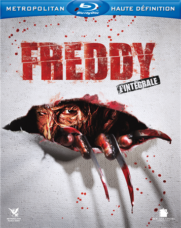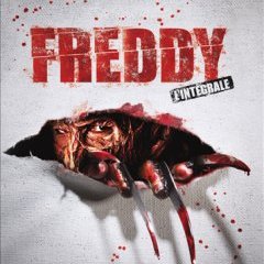 Petit coup d’oeil sur le menu du coffret blu-ray de l’intégrale de la saga Freddy avec Robert Englund, donc sans le remake médiocre de 2009, en 4 blu-ray + un DVD...