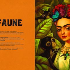 L’illustrateur a choisit de superposer ses dessins sur les tableaux de Frida Kahlo, de se caler viscéralement dans l’esprit de l’artiste, pour la construction de ses pages ciselées et découpées façon pop-up à plat. Ainsi, des nouvelles créations de Benjamin Lacombe, émergent toute l’âme de la grande dame.