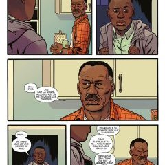 De fait, le dessin s’inclut dans ce carrefour : tantôt évasif comme un comic de l’âge d’or, tantôt travaillé, violent et réaliste comme ceux des années 2010, il enchaîne les pages avec une envie de faire réagir, davantage sur l’injustice sociale et la maladie que sur les frasques de super méchants avides de modifier le passé. Avec ce Détroit aux allures de ruines, avec ses protagonistes que l’on pourrait croiser dans la rue (hormis le défiguré assez charismatique), Furtif s’emploie à transcrire une époque, un ressenti davantage qu’une histoire unique ou vraiment originale.
