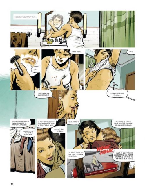 Critique : Les grandes guerres mondiales peuvent fournir un cadre à toutes les histoires, de par leur environnement épique et tragique qui peut magnifier ou pervertir n’importe quel thème et n’importe quelle narration. En se plaçant du point de vue américain, côté Pacifique, on pouvait s’attendre à la relation entre les États-Unis et le Japon façon Lettres d’Iwo Jima, mais le titre de cet album ne voulait pas laisser de doutes : c’est sous le prisme de l’homosexualité qu’est traité l’entrée dans la Seconde Guerre mondiale, à la suite de Pearl Harbor. Le plus fort, c’est que l’on est pas loin de l’ambiance du célèbre film du nom de la base hawaïenne, puisque l’amour est mis à l’honneur, davantage que les batailles. Seulement, là où le cinéma a enfoncé les portes déjà ouvertes du trio amoureux, G.I. Gay a voulu plutôt sortir du placard une vérité méconnue, celle de la radiation des listes de combattants des individus jugés déviants, et de leur place dans la société de l’époque, entre rencontres clandestines et maltraitance voire homicides dans la lumière. Grâce à ce personnage hésitant, qui ne devine qu’au bout de la moitié de l’ouvrage qu’il a des sentiments que toute son éducation et son entourage réprouvent, une dénonciation, une critique, une mise en parallèle avec les retours nauséabonds de notre époque, vient se greffer à cette guerre.