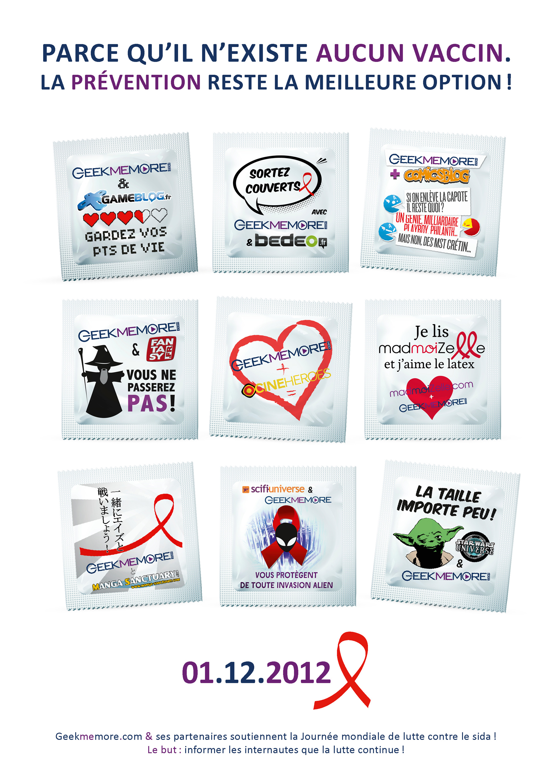 Aujourd’hui, nous entamons notre action de solidarité contre le sida, conjointement avec Geekmemore et ses partenaires. Aujourd’hui, nous crions oui au sexe et non au virus du VIH !