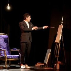 Baptiste Carrion-Weiss campe avec beaucoup de talent un des pygmalions du surréalisme : Salvador Dali, alors jeune inconnu, drogué et qui ne se lave plus dans l’attente de sa muse. Athlétique de corps et d’esprit, il est « en état permanent d’érection intellectuelle ». Bondissant, exubérant, extravagant, il s’adresse au public pour embarquer notre esprit. Rebelle et philosophe à la voix essoufflée, Baptiste Carrion-Weiss alterne les séquences avec agilité, entre rêve éveillé et réalité virtuelle, folie des grandeurs et génie du geste.