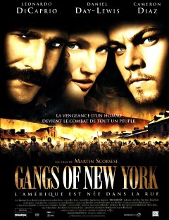Résumé : Début des années 1860, pendant les Draft Riots, le quartier des Cinq Points, un faubourg pauvre de New York, est le théâtre d’une guerre des gangs entre émigrants irlandais d’un côté, les Dead Rabbits menés par Priest Vallon, et les Native Americans de l’autre, menés par le sanguinaire Bill Poole le Boucher. Ce dernier met rapidement en déroute les Dead Rabbits en assassinant leur chef, et prend par la même occasion le contrôle exclusif des rues de la "grosse pomme". Afin de renforcer ses pouvoirs, Bill s’allie avec le puissant Boss Tweed, un caïd sans scrupules qui terrorise la ville. Dix-sept ans plus tard, le gang des Native Americans règne toujours en maître dans New York. Devenu adulte, Amsterdam Vallon s’apprête à faire renaître de ses cendres le gang des Dead Rabbits et à venger la mort de son père en éliminant Bill Poole.