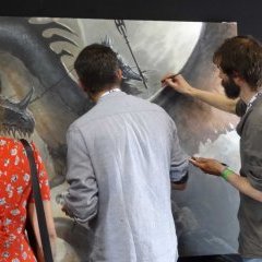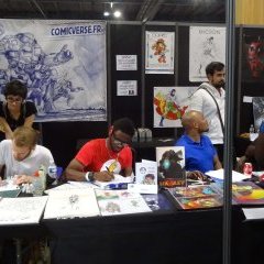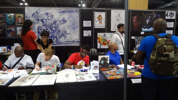 de ces combattants à la canne s’escrimant pour notre plaisir au milieu d’une des arènes, de Marcus qui soutient le salon depuis le début, des vaillants créateurs de Noob ayant accepté de participer à des ateliers, des dessinateurs du collectif ComicVerse,
