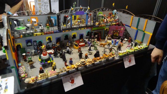 N’oublions pas l’espace dédicace et surtout une grande zone de jeu, où vous pouviez essayer jeux de société, jeux de plateau, jeux de rôles, bref jeux de toutes sortes.
