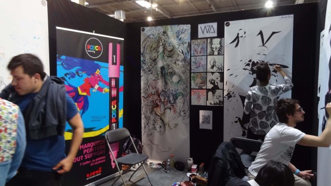 Citons le stand de Walking Art, avec ses artistes en pleine illustration à même les parois de leur espace,