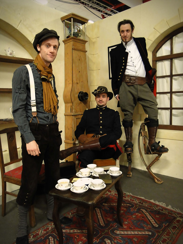 C’est à partir de ces 3 ans de réflexion qu’on est arrivé au concept de Geekopolis en s’appuyant sur une ville car on voulait quelque chose d’immersif dans lequel on a l’impression de voyager. On a aussi voulu donner un autre sens au mot geek qui a longtemps été un terme péjoratif. Du coup on a créé cette cité qui s’articule autour de cinq univers qui sont totalement arbitraires mais que l’on a essayé de décomposer en grandes familles. Il n’y a pas vraiment d’ordre, l’an passé on arrivait à Geekopolis via une zone d’accueil qui donnait accès aux cinq autres zones sans hiérarchie. Il y a Metropolis (Science-fiction, space-opéra, comics), ensuite le quartier Avalon est médiéval-fantastique, Little Tokyo représente l’univers du manga mais aussi le Japon. La partie Teklab contient tout ce qui est science et technologie. Enfin on retrouve au sein de Nautilus un thème moins connu par la majorité, le steampunk, une uchronie basée sur les écrits de Jules Verne par exemple, avec une ambiance d’époque victorienne.