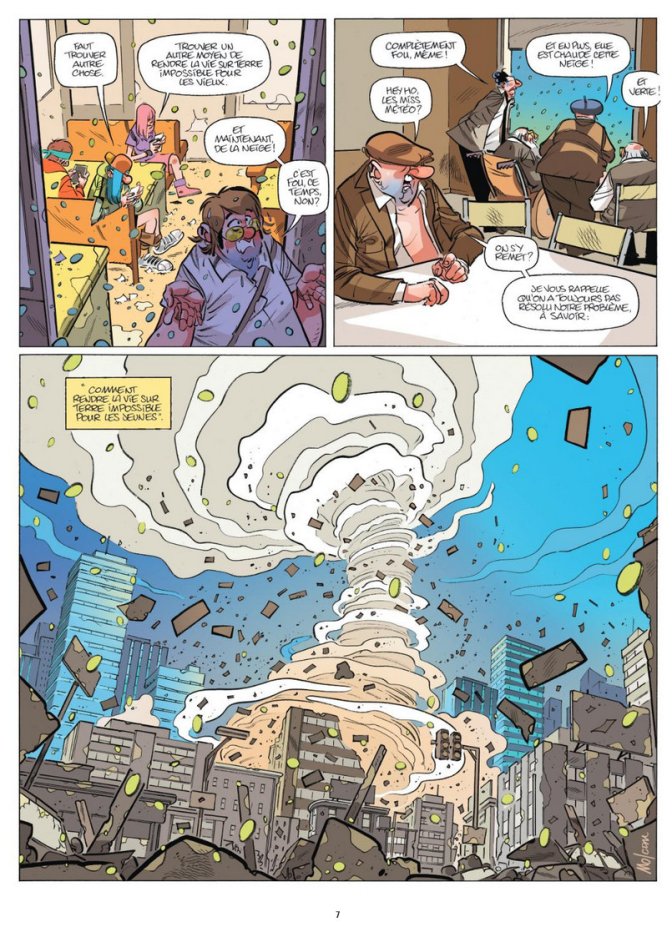 Résumé : Ce troisième tome signe le retour d’un groupe de vieux qui décide d’un plan pour mettre fin à la présence des jeunes : lancer une deuxième Seconde Guerre mondiale avec un deuxième troisième Reich et tout et tout ! Bon, les jeunes, en face, ne sont pas en reste non plus en plans absurdes. Mais un événement inattendu va changer la donne et surtout les plans de tout le monde !