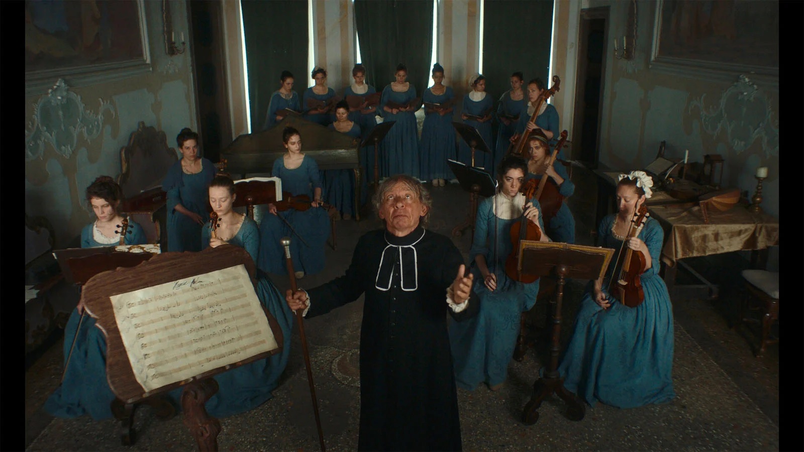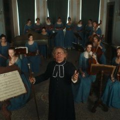 Gloria ! constitue un film troublant. Troublant parce que la réalisatrice brouille les époques et les évènements, grâce à l’arrivée d’un piano-forte qui transforme ce microcosme vénitien du XVIIIe siècle en une société avant-gardiste où la variété et le jazz s’invitent avec joie. Il faut donc se laisser aller à un mélange des genres assumé, sans chercher à y trouver la moindre cohérence. La vraisemblance n’est absolument pas le fil conducteur du scénario de la réalisatrice. Ce qui compte pour elle, c’est d’abord la voix donnée aux femmes grâce à la puissance de leur créativité musicale. Margherita Vicario élève son récit dans une période multiple, énergétique, qui rappelle à chacun de nous la nécessité de faire unité face à la brutalité des totalitarismes et des dominations masculines.