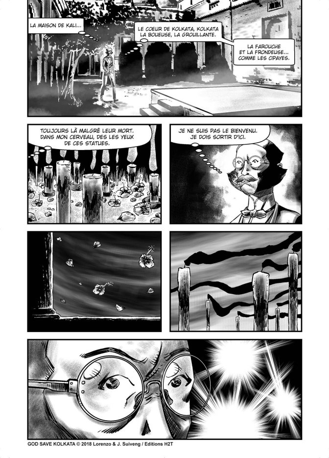 Si la composition des pages devient plus prenante au fil de la lecture, parfois, les poses ou la composition auraient pu, à notre avis, être plus dynamiques, plus lisibles. Mais cette curieuse investigation et cette immersion dans ces Indes auréolées de fantastique restent prenantes.