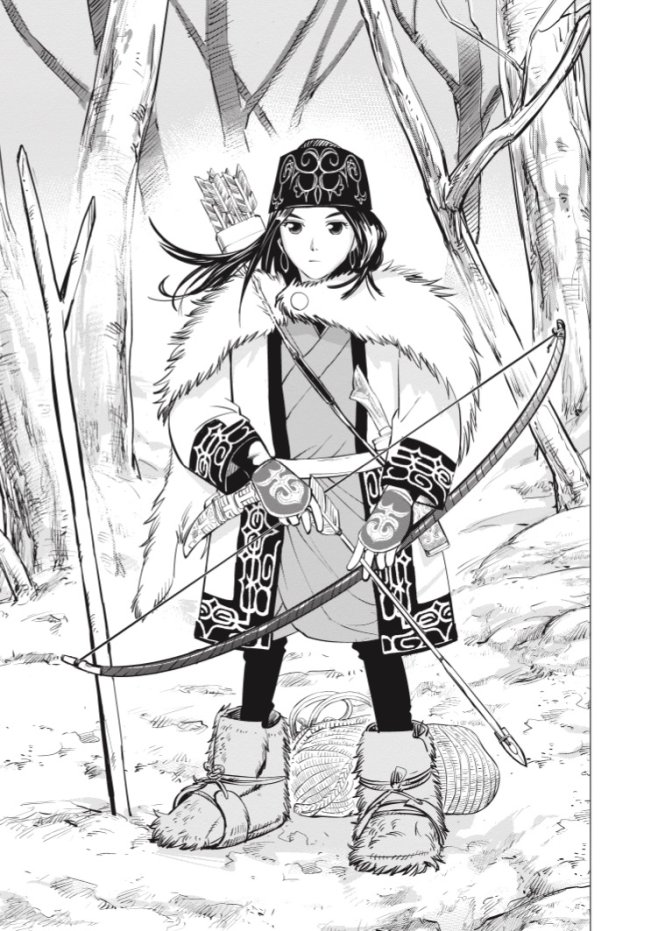 Le dernier point fort de ce récit, après ces rappels historiques (on espère que vous nous en excuserez !), se trouve dans le duo principal. Et ce sont d’ailleurs plus les personnages que le contexte ou l’intrigue qui font que ce manga est classé seinen. On est loin du duo gentil de shonen, les personnages sont durs à l’image de l’île et du contexte. Sugimoto est un survivant et il compte le rester. Aussi s’il ne cherche pas à être cruel, il n’hésitera pas à faire ce qu’il faut pour survivre. De même Ashirpa, qui est une jeune chasseuse, vit à la dure et parait très mure et détachée des choses sur lesquelles elle ne peut rien faire (racisme entre autre qu’elle encaisse très bien si on peut dire les choses ainsi).