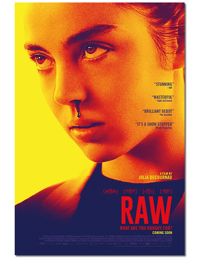 Résumé : Dans la famille de Justine tout le monde est vétérinaire et végétarien. À 16 ans, elle est une adolescente surdouée sur le point d’intégrer l’école véto où sa sœur ainée est également élève. Mais, à peine installés, le bizutage commence pour les premières années. On force Justine à manger de la viande crue. C’est la première fois de sa vie. Les conséquences ne se font pas attendre. Justine découvre sa vraie nature.