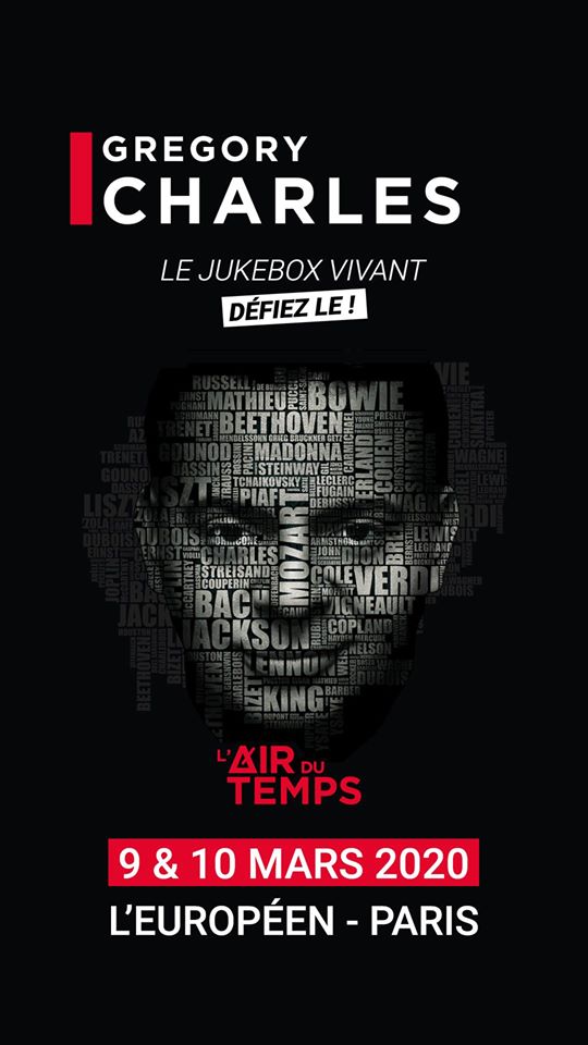 News : Le pianiste-chanteur Gregory Charles, amoureux d’histoire et de musique, présente son plus ambitieux spectacle et invite les spectateurs à revivre les 250 dernières années de musique et d’histoire occidentale. Du baroque au hip-hop, de la Révolution française à la révolution numérique, Gregory prouve avec « l’Air du Temps » qu’il est, à sa manière, un des artistes les plus érudits de notre époque.