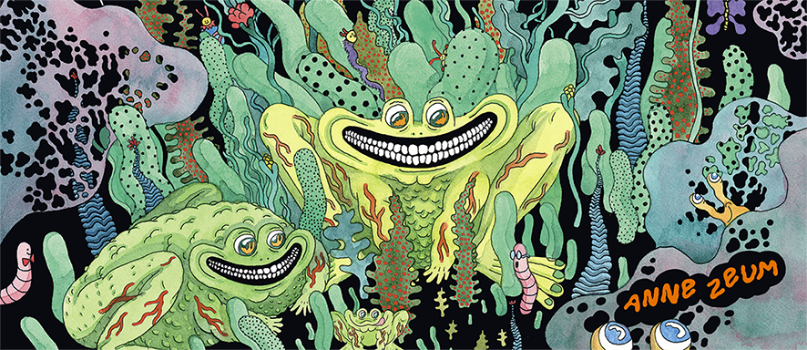 Critique : Grenouilles voraces et grasses limaces entraîne le lecteur dans la vie d’un jardin, en le plaçant à hauteur d’œil animal. Cette proximité donne à voir le drame qui se joue sur ces terres, les conséquences directes et indirectes de l’intervention humaine désirant contrôler la nature, la détruire sous prétexte de la réguler. Mais à force de mauvais tours (mortels) joués aux uns et aux autres, les protagonistes de ce récit finissent par réaliser le mal qu’ils s’infligent. Anne Zeum termine ainsi par une réconciliation entre les animaux et le jardinier, dans une conclusion prônant le vivre-ensemble et démontrant les bienfaits de la biodiversité.