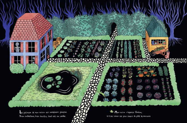 Résumé : Gusto cultive son jardin en organisant consciencieusement sa plantation, régnant en maître sur cet espace de nature qu’il aménage de manière à obtenir des alignements de légumes parfaits et des rangs de salades bien propres. Seulement, à y regarder de plus près, ce potager héberge une vie grouillante, une population de grasses limaces et de grenouilles voraces qui se repaissent des bons légumes de Gusto. Ce dernier, découvrant cet écosystème qui abîmes ses plans, décide de l’anéantir en déversant des substances chimiques. Face à cette intoxication massive, les animaux ne se laissent pas faire.