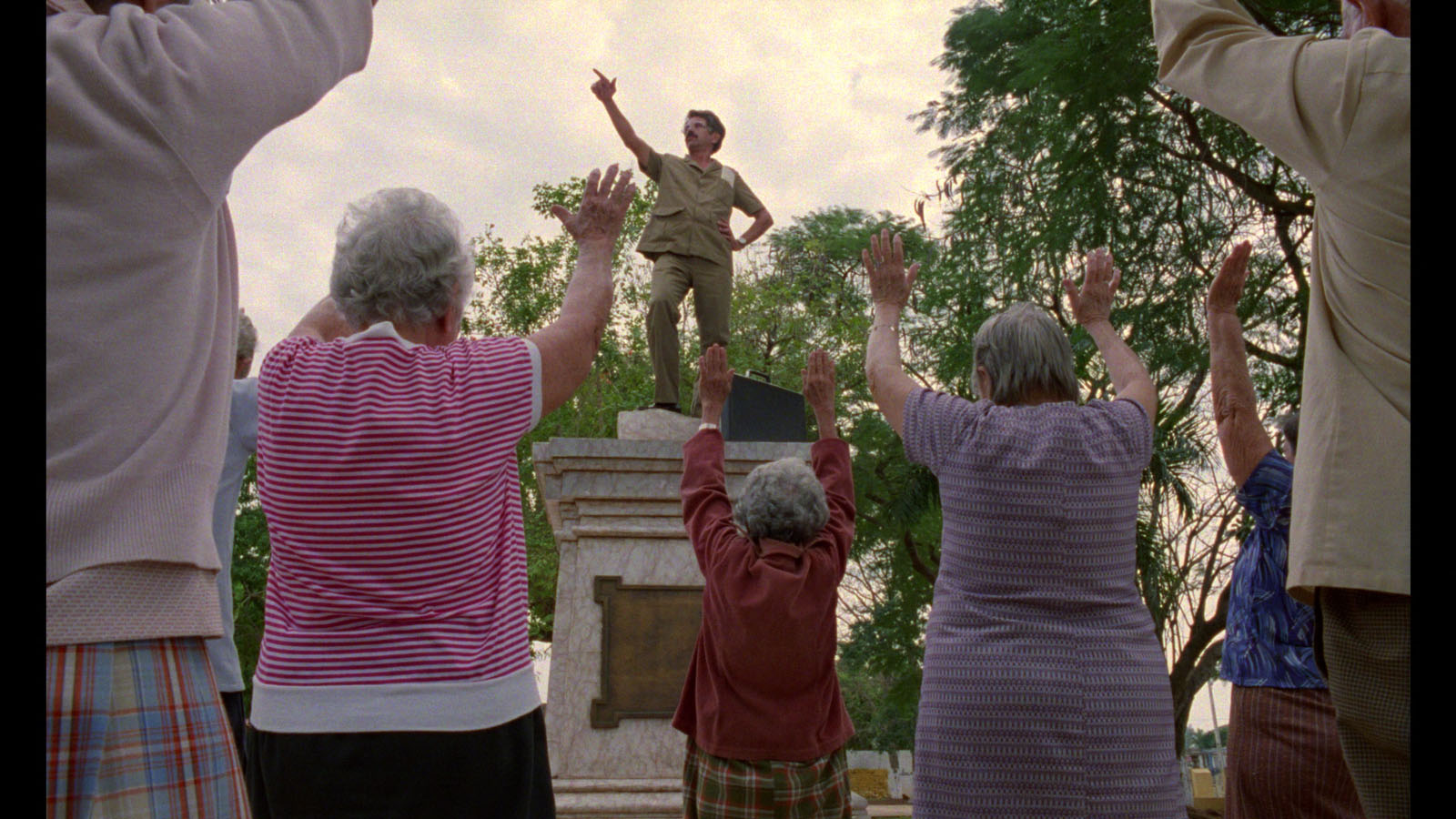 Difficile de ne pas voir dans le personnage du vieux sage Candido (et le nom en dit long) un alter ego du réalisateur : c’est lui qui juge le mieux Adolfo, lui qui rapproche le couple, lui qui meurt à la fin. Le personnage n’en est que plus soigné, attentif à son bilan nostalgique : pour lui, la vie « s’est rétrécie ». Discret, il accompagne et intervient peu, davantage témoin que partie prenante. Mais au fond, sa présence fait contrepoint à celle des agités permanents, qui brassent du vide en croyant organiser. Il sait la vacuité des organisations.